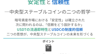 中央型ステーブルコインの二つの思想を読み解く 1. なぜ「2つのドル連動トークン」が存在するのか 暗号資産市場では、価格の安定を求めるニーズからステーブルコインが誕生した。 その中でも、USDT(Tether)とUSDC(USD Coin)...