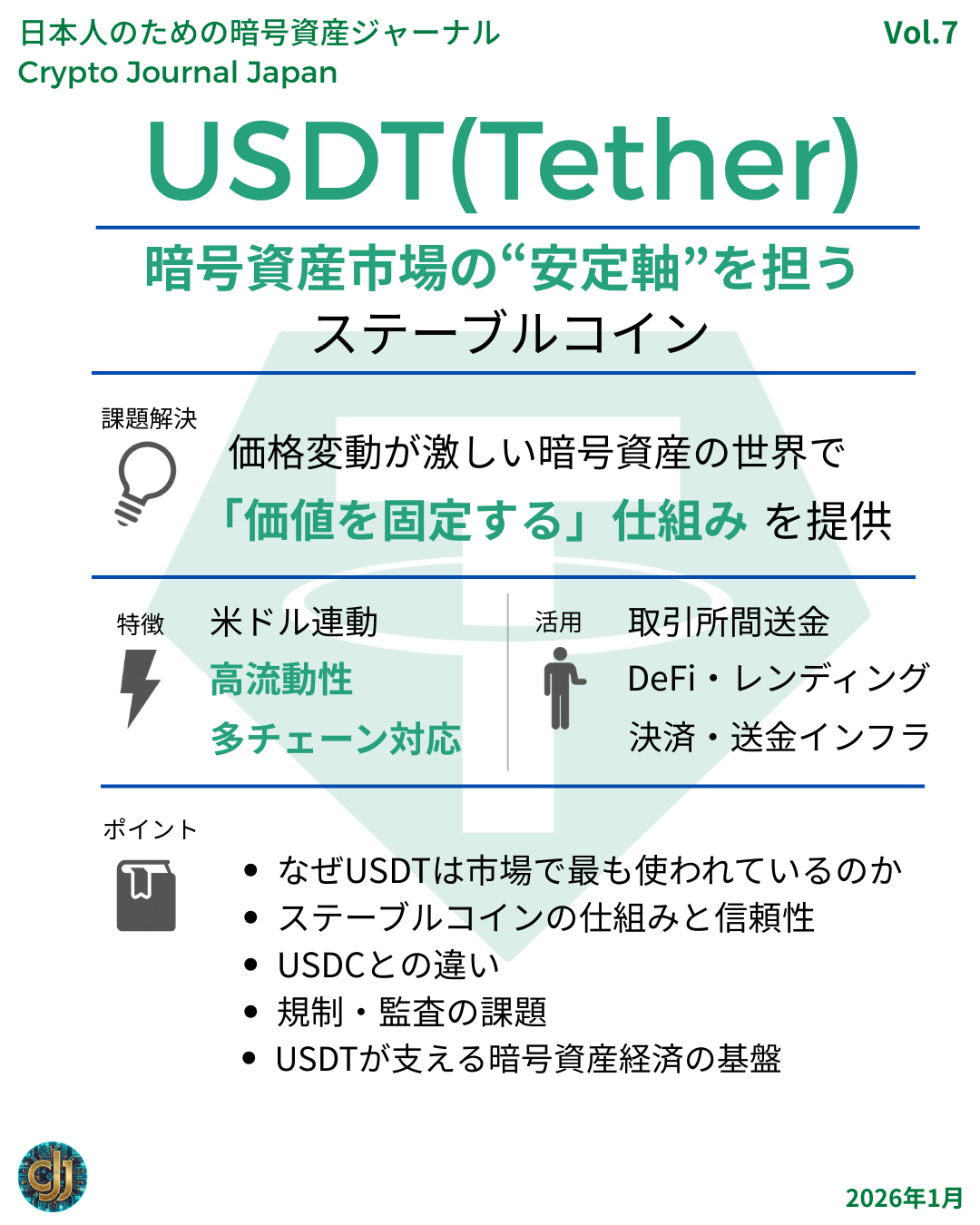 📌 注記: これらの課題は、USDT特有というより「中央集権型ステーブルコイン全体の構造的課題」とも言える。
